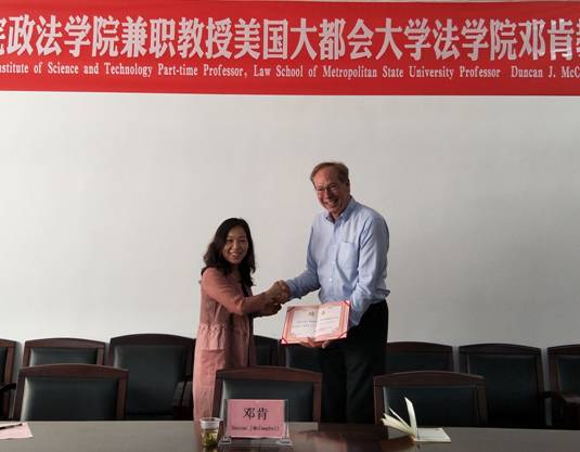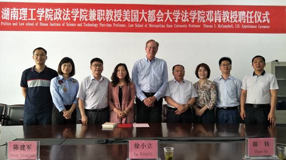 5月17号上午,美国明尼苏达州大都会大学MK体育邓肯博士受聘公司兼职教授仪式在公司会议室举行,副董事长徐小立出席,公司经理陈建军、公司国际交流处处长陈钰、公司总支书记刘淳松、副经理周四丁、经理助理尹晓闻、公法教研室主任梁晨、私法教研室主任孟磊等与会。