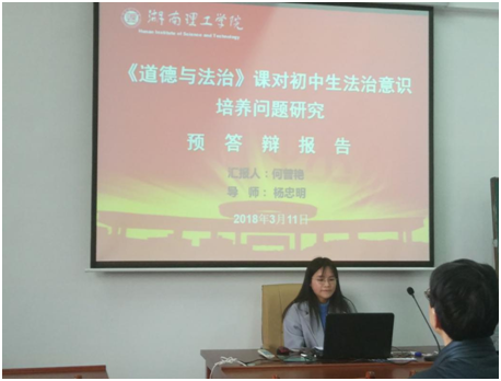 3月11日下午,公司举行2016级学科教学(思政)教育硕士学位论文预答辩。答辩专家组由湖南师范大学公共管理公司副经理、博士生导师彭继红教授,岳阳市十四中高级教师黄正阳,mksport体育马克思主义公司陈其胜教授组成。公司经理陈建军、副经理周四丁、2016级学科教学(思政)教育硕士研究生导师,以及2017级学科教学(思政)教育硕士研究生出席答辩会。