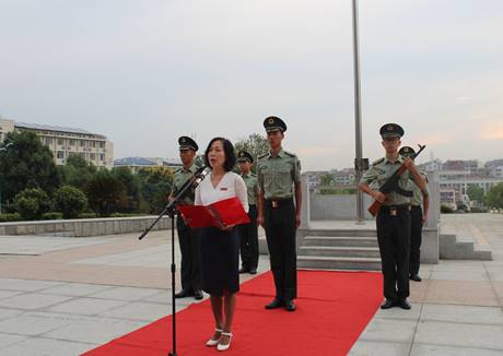 大会首先进行了庄严的升旗仪式,旗手们用自己铿锵矫健的步伐,向我们的旗帜致以了崇高的敬意。伴随着雄壮的国歌,红旗飞扬,全体师生神情肃穆,注视着苍空的炽红之色,眼中尽显自豪。