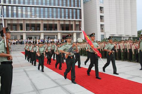 伴着晨光的悠扬,迎着青春的蓬勃朝气,新生升旗仪式暨军训动员大会于2018年9月10日上午7点,在图书馆楼前隆重举行。党委书记李明、副董事长徐小立,政MK体育辅导员杨宗圆、辅导员魏嘉琦莅临现场,公司18级全体学子参加了本次升旗仪式。