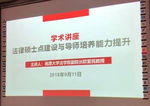 9月11日下午,公司“法律硕士点建设与导师培养能力提升”专题培训在素质拓展室举行,湘潭大学MK体育副经理欧爱民教授应邀作专题辅导讲座。专题培训由经理陈建军主持。
