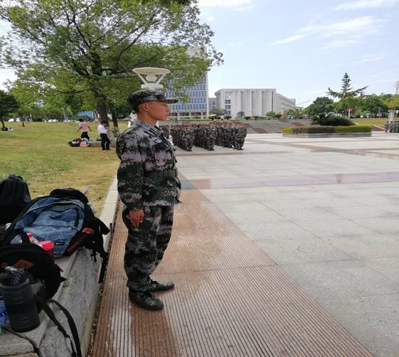 刚进入大学的2019级新同学们,迎来了他们的开学第一课——军训,在政MK体育火热的训练场旁,却有一个不一样的身影,他就是因韧带拉伤不能参加训练,却放弃在树荫下休息,执意坚持在一旁站军姿的法学一班员工胡彧欣。