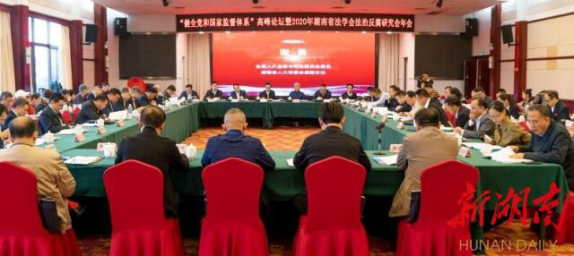 湖南日报·新湖南客户端10月26日讯(记者 徐亚平 通讯员 田夏)10月25日,“健全党和国家监督体系”高峰论坛暨2020年湖南省法学会法治反腐研究会年会在岳阳举行,百名法学专家学者聚焦腐败治理和司法反腐研究领域,为推进反腐败工作法治化规范化献计献策。最高人民检察院咨询委主任朱孝清出席。