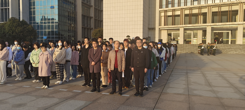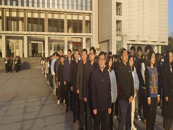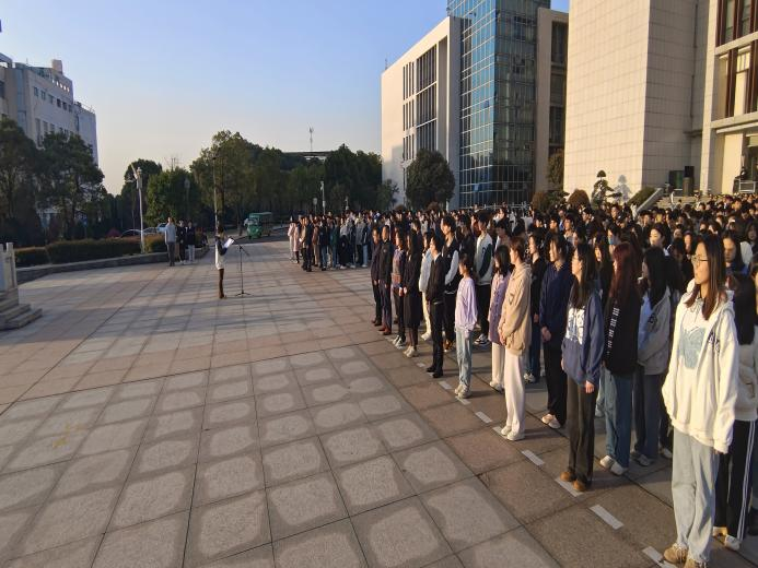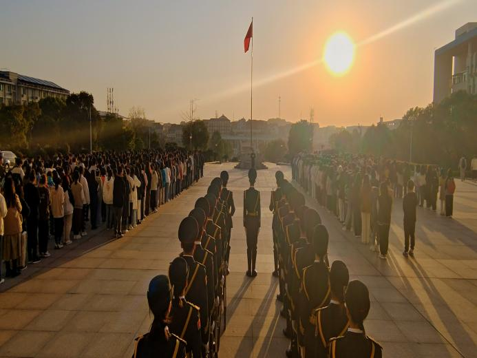 升旗仪式是爱国主义教育中重要的一环。升国旗不仅能提示同学们不忘历史,热爱国家,忠于人民与党。更能激励同学们发奋自强,将青春奉献给自己的祖国。在新的一年里,各位同学都应饱含主人公精神,踔厉奋发,努力向着建设特色鲜明的国内高水平大学的目标奋斗,成为社会主义事业的建设者和接班人。(撰稿:李奕康;一审:何铁勇;二审:张陈武;三审:喻义东)