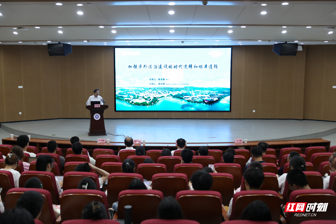 红网时刻新闻9月29日讯(通讯员 张博 龙龙)9月28日晚,mksport体育在17118报告厅举办南湖法治论坛,特邀国际法领域资深专家黄惠康主讲“新时代加强涉外法治建设的根本遵循和时代逻辑”,mksport体育董事长曾祥君主持报告会。