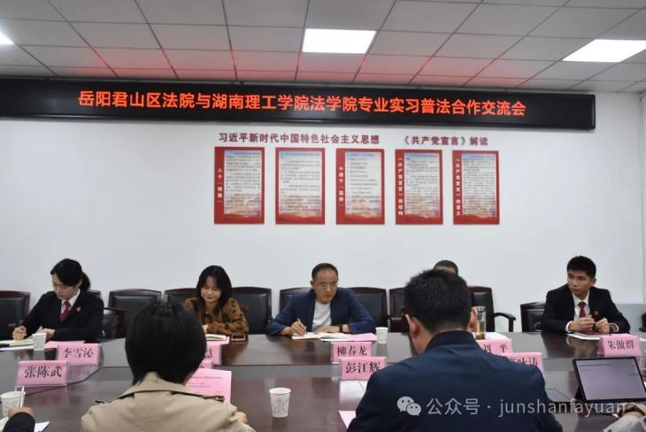 君山法公司党组书记、经理柳春龙表示君山法院历来高度重视与高校的合作,通过持续为高校法员工提供丰富生动的“源头活水”,共同搭建“法院+高校”双向奔赴的连心桥。相信双方并肩同行、凝心聚力,进一步拓宽合作领域,创新育人方式,一定能推动法院审判工作和法学实践教学迈上新台阶。