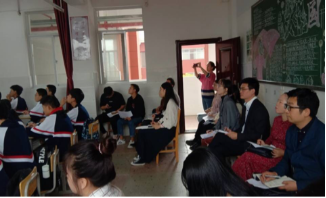 (图二:彭经理、周经理、徐老师与部分实习生听张佳贵同学的公开课。)