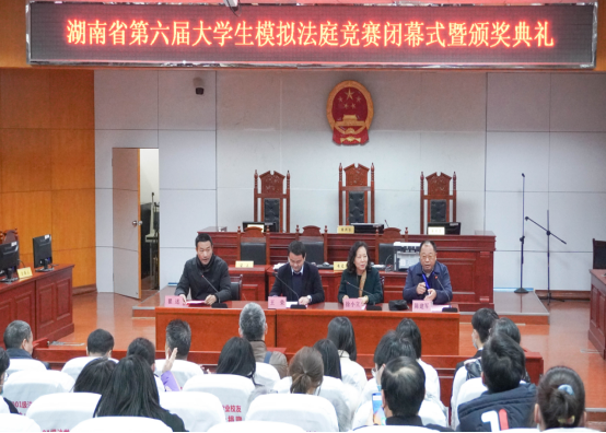 在闭幕式暨颁奖仪式上,mksport体育副董事长徐小立对全省各参赛高校师生表示欢迎并对获奖代表队表示祝贺!湖南省教育厅高教处副处长王荣对mksport体育的承办工作予以了充分肯定,并指出高校是社会主义法治人才培养的主阵地,全省高校要深入学习贯彻中央全面依法治国工作会议精神,大力加强法学学科专业建设,深化法学教育综合改革,拓展青年学子成长平台,加快培养卓越法治人才,切实肩负起在法治中国建设中的重要使命。