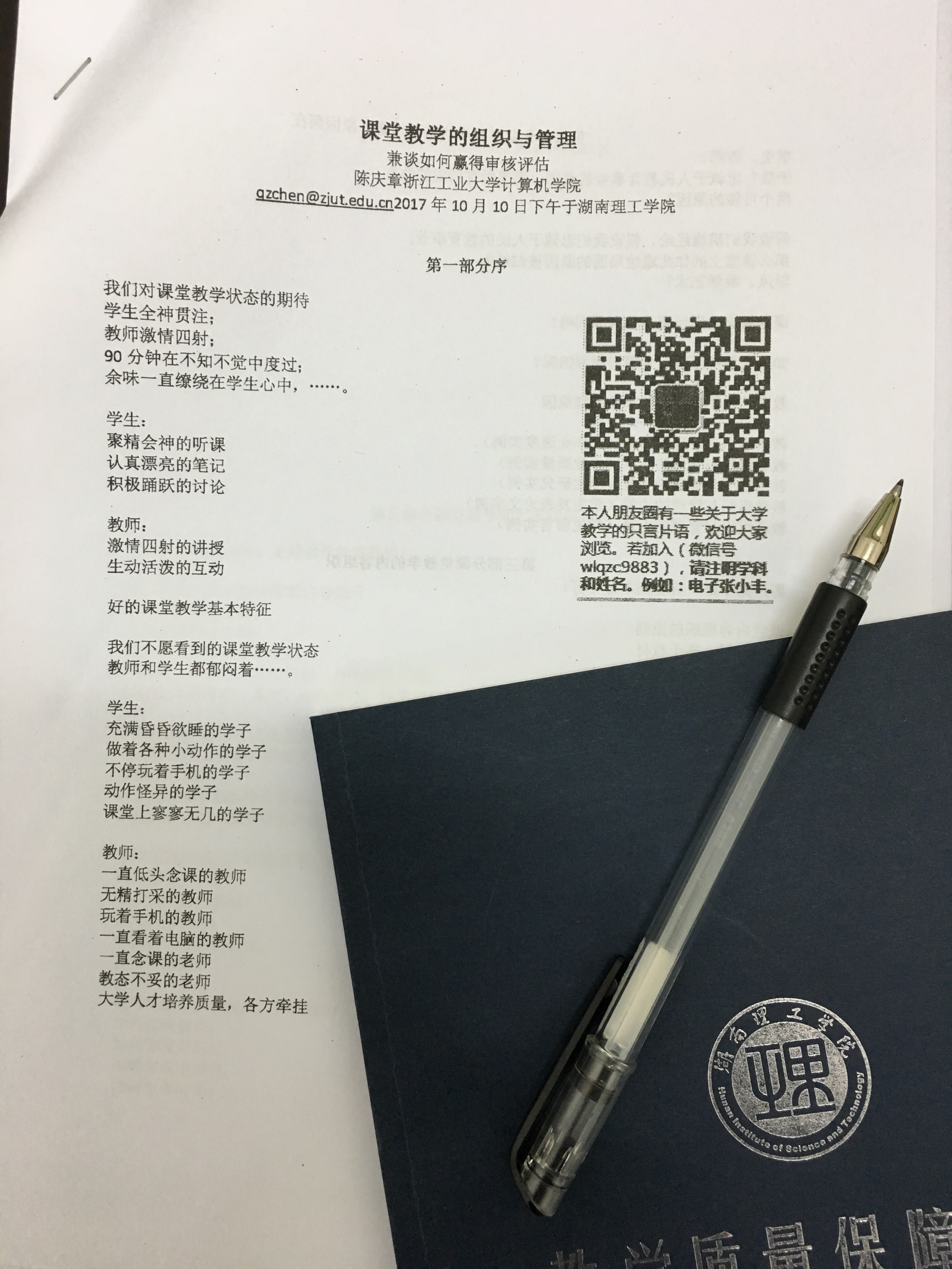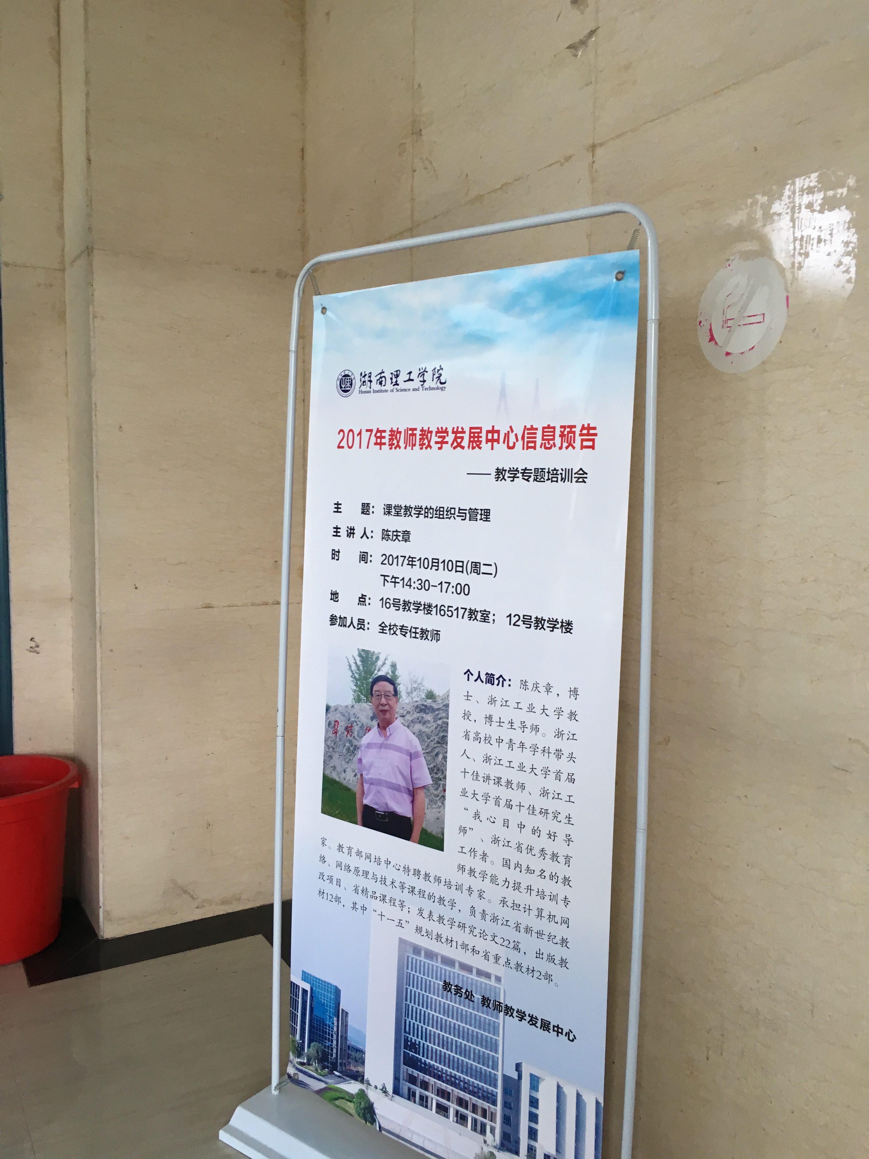 10月10日下午,政MK体育组织当天下午没有授课任务的全体教师,在16号教学楼16517和16521教室参加公司教务处举办的“课堂教学的组织与管理,兼谈如何赢得审核评估”教研培训,听取浙江工业大学陈庆章教授的专题报告。