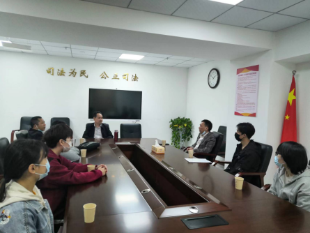 2023年4月10日MK体育副经理尹晓闻博士、实验室主任曹乔华老师来到岳阳楼区法院对正在进行专业学习的实习情况进行检查,并与法院政治处有关领导就校地合作开展深入交流。