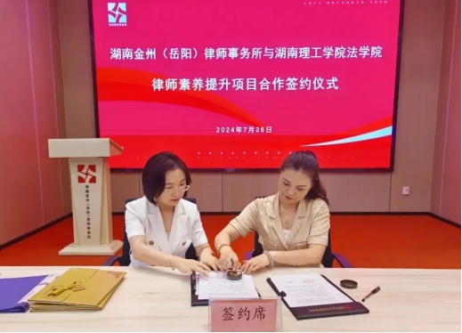 为深化校企合作,推动教学与实践的紧密结合。7月26日下午,MK体育与湖南金州(岳阳)律师事务所合作项目——律师素养提升在湖南金州(岳阳)律师事务所顺利签约。mksport体育公司党委书记薛静、经理彭江辉、副书记张陈武、党委委员张咏涛、实验室主任杨河与湖南金州(岳阳)律师事务所主任胡红梅、合伙人周超、合伙人谢君、合伙人唐健及律师事务所部分青年律师举行签约仪式。