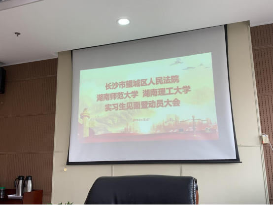 望城区人民法院政治部主任何鸣,民庭副庭长兼实习生负责人龙峰、各庭室庭长、院里领导及实习分队的全体师生参加了动员大会。会上,龙副庭长首先代表望城区人民法院欢迎了同学们的到来,鼓励大家在实习中将理论知识与具体案件相结合,以求有所收获,随后介绍望城区法院的工作休息制度,安排大家的食宿,并且结合同学们的实习意向分别将大家安排到民庭、刑庭、诉讼服务中心、综合审判庭、速裁团队参与实习。
