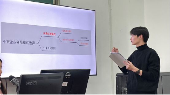 第二位主讲人朱贤同学,探讨的主题是‘浅析小微企业合规整改模式’。朱贤同学首先指出在司法实践中,我国企业合规案件主体多为中小型企业。小微企业适用刑事合规,具有合规基础薄弱、合规风险相对集中、合规激励对其效果有限等特点,接着朱贤同学也阐明了在合规整改模式的适用上,小微企业也存在其特殊性,由于小微企业与其负责人高度捆绑,实践中多适用并案处理模式又因小微企业资源缺乏保障,为求合规整改的有效性,检察建议模式成为主要整改方式,即使适用附条件不起诉模式,也应当遵循相称性原则,对小微企业适用比之标准合规模式更为简易的简式合规模式。