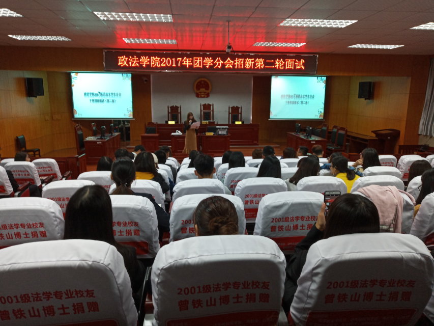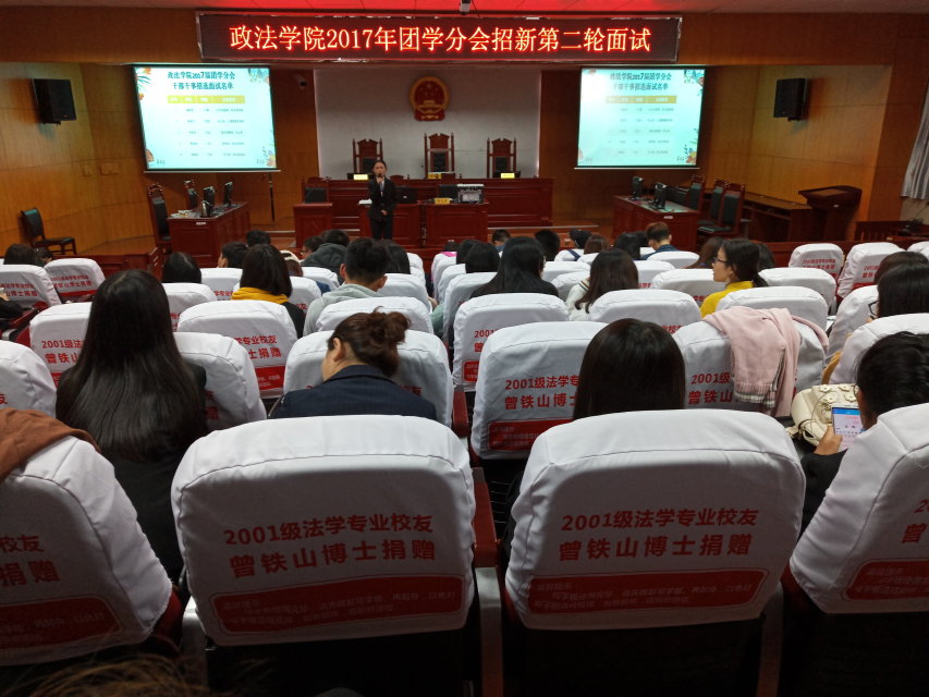 江山代有才人出,招新换届易新颜。为进一步完善政MK体育团学分会干部队伍,提高团学分会的战斗力、凝聚力和创新力,政MK体育团总支、员工分会于10月13日晚6时在8教学楼模拟法庭举行团学分会招收新成员面试。政公司党总支副书记石蕙、团总支书记魏嘉琦、2017级辅导员杨宗圆、2017级公共事业管理班班主任贺志韧等老师以及政MK体育团学分会成员担任此次招新面试评委。公司部分2016级、2017级同学参加此次招新面试。
