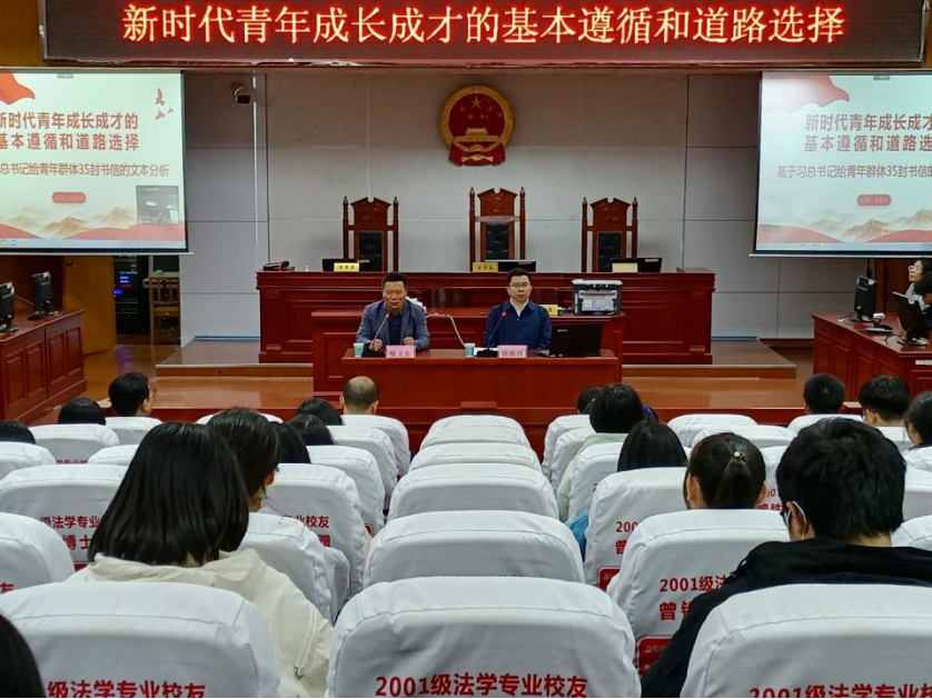 为了引导员工树立正确的人生观和价值观,明确新时代青年老员工的发展方向,11月16日晚七点半,政MK体育在八栋模拟法庭召开2021级新生理想信念入学教育讲座,mksport体育副董事长徐振祥受邀担任主讲,本次讲座由政公司党委书记喻义东主持,出席本次讲座的有政公司党委副书记张陈武、2021级本科生辅导员王旭智。为配合疫情防控规定,此次讲座分为线上线下两场,一部分2021级新生在模拟法庭参加线下讲座,另一部分新生在员工自习室观看线上讲座。