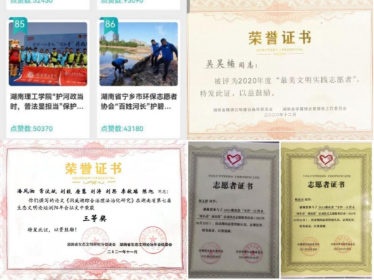 两年来,mksport体育政MK体育“河小青”普法志愿服务团队积极响应团市委号召,利用多渠道、多手段积极进行生态环境保护普法教育活动,带动青少年志愿者参与到环保治理的行动中来。截止至今,已累计开展了主题团课41场、主题教育课35场、23场专题案例研讨会、辩论赛18场、社区普法宣传9场、河道清理10场次。在此期间,团队也获得了诸多奖励,如共青团中央第十届母亲河奖“绿色项目奖”国家级提名;团队专业指导老师潘凤湘博士带领团队成员撰写的河流保护治理论文取得省级三等奖;团队多名志愿者获得湖南省最美文明实践志愿者称号和岳阳市优秀志愿者称号等。