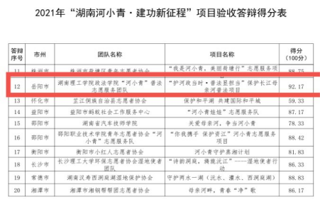 12月18日,湖南团省委举办的“2021年湖南河小青 建功新征程“项目答辩圆满结束。本次答辩以线上答辩形式开展,共有来自全省50支河小青队伍参赛。经评委评定,mksport体育政MK体育“护河政当时,普法显担当”项目凭借92.17的高分在众多项目中脱颖而出,以全省第二名全校第一名的好成绩完成结项!
