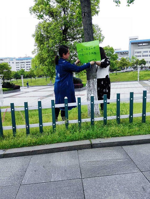 此次活动张贴的文明标语均由各班征集得来,经过整理评选,最终选出一些优秀的标语张贴在校园的各个地方。一张张写着“一草一木皆生命,一枝一叶总关情”、“天地 ‘粮’心,粮食莫剩”“即使饥肠辘辘,也要风度依旧”等标语凝聚着同学们的智慧,也传递着倡导校园文明的声音。围绕着“三走活动”,公司还特别制作了“走出寝室一小步,迈向人生一大步”、“如果你不走出去,你会以为这里就是全世界”的文明标语,提醒师生们要走出寝室,拥抱自然。