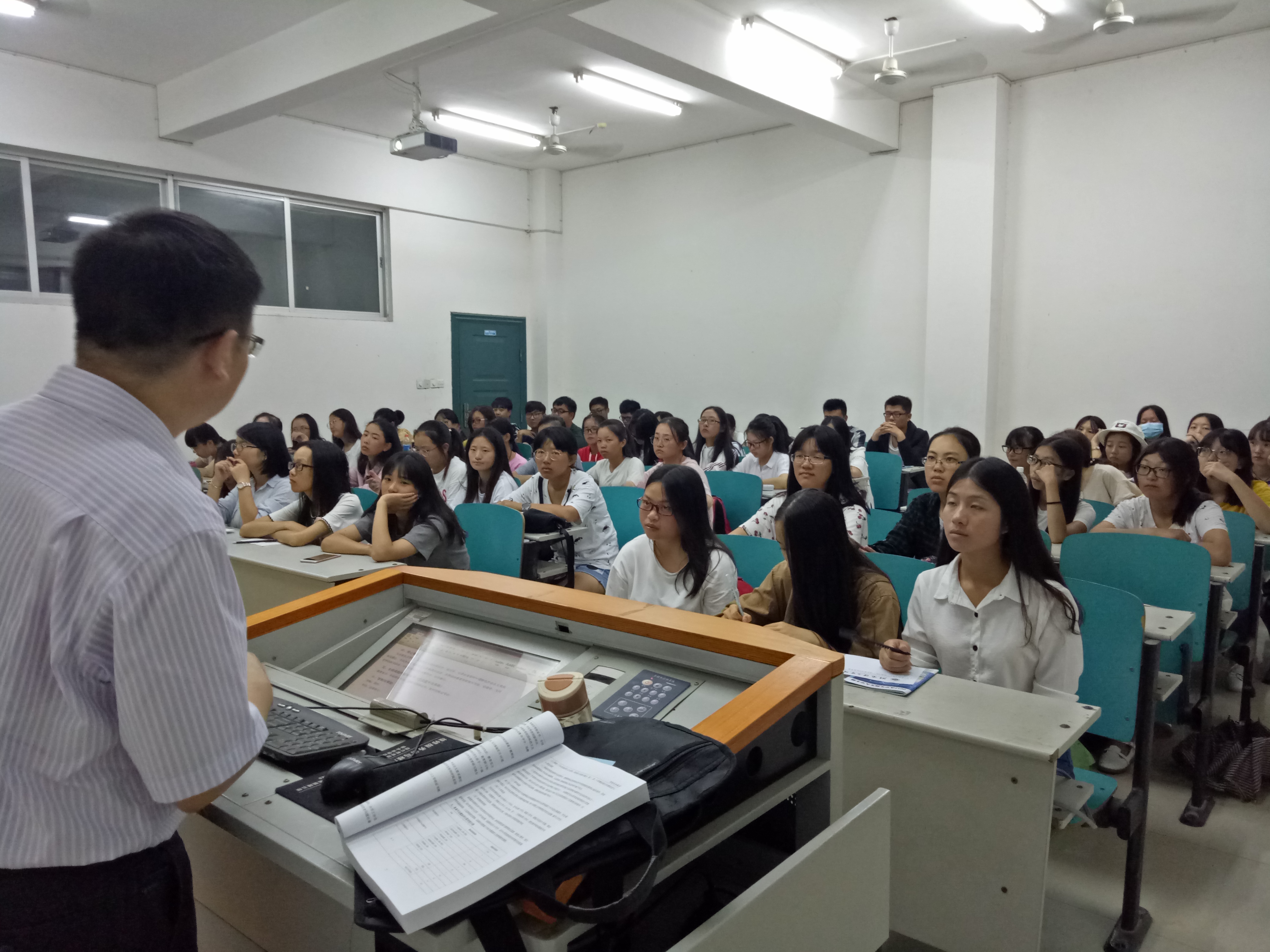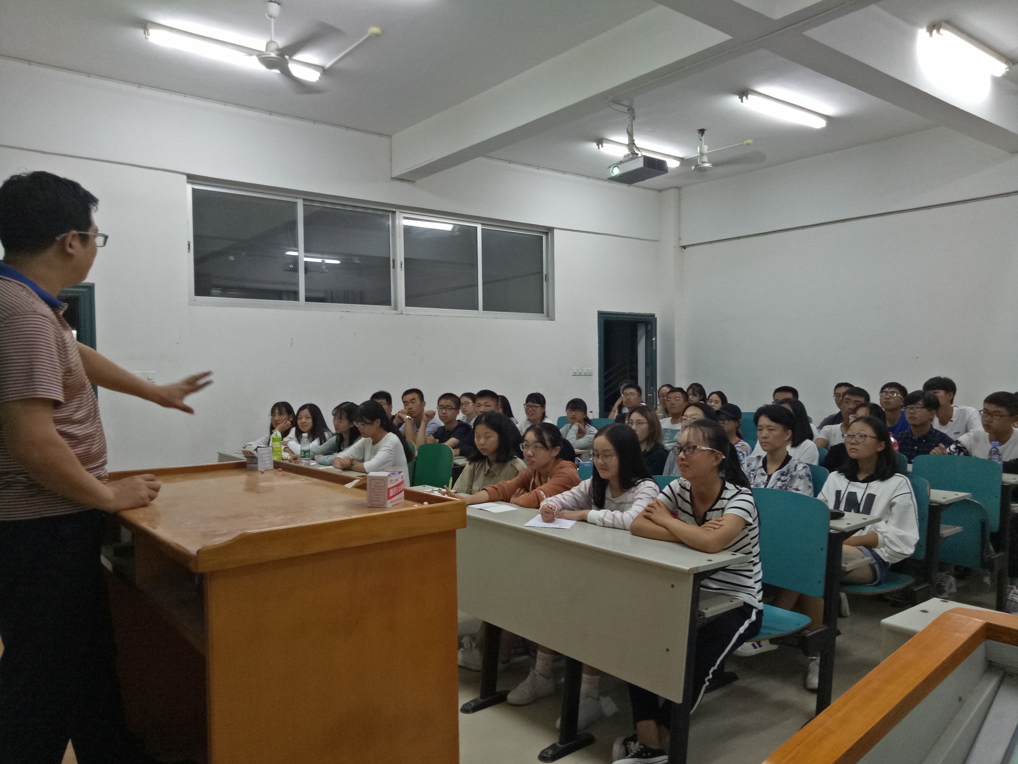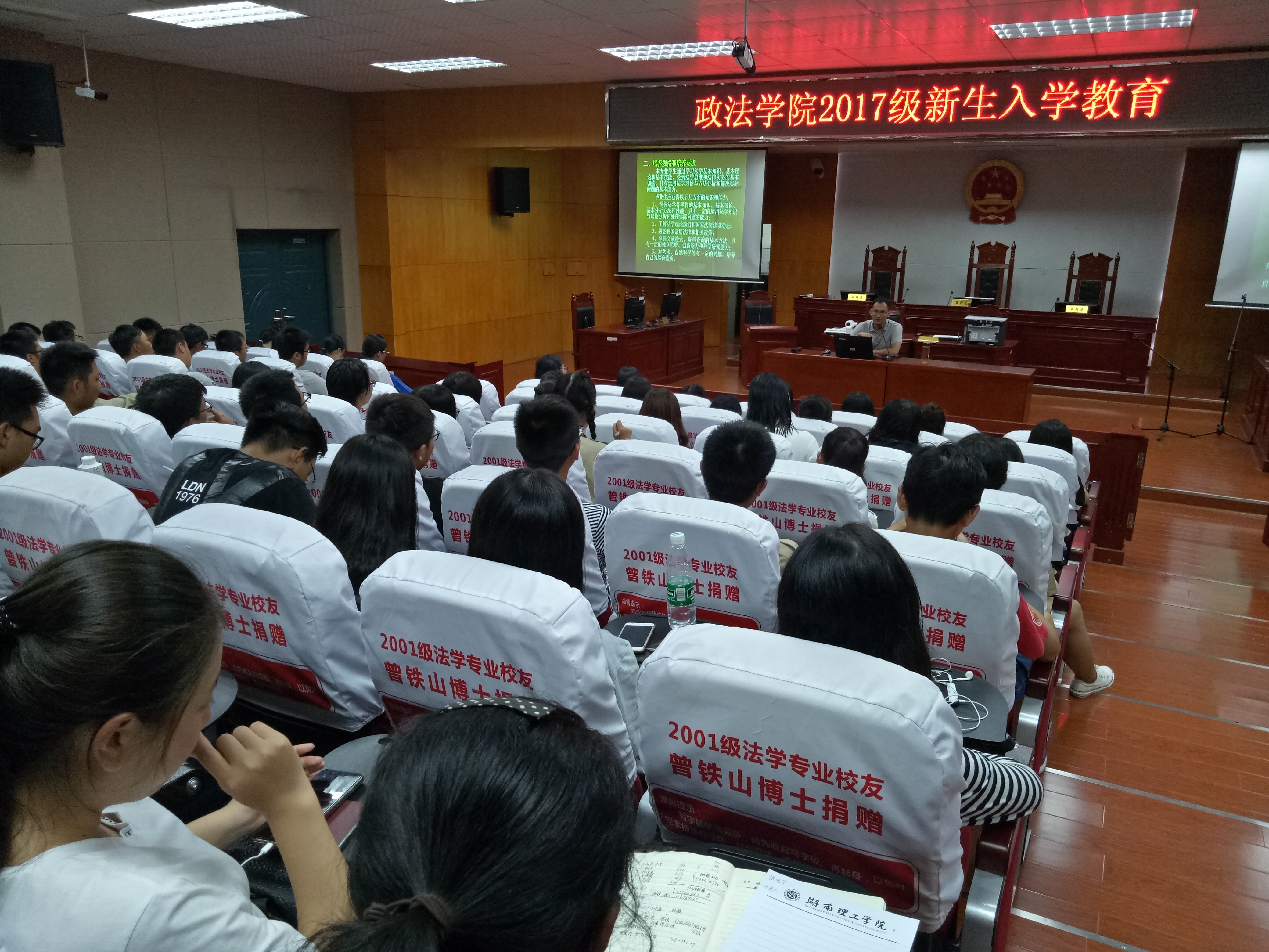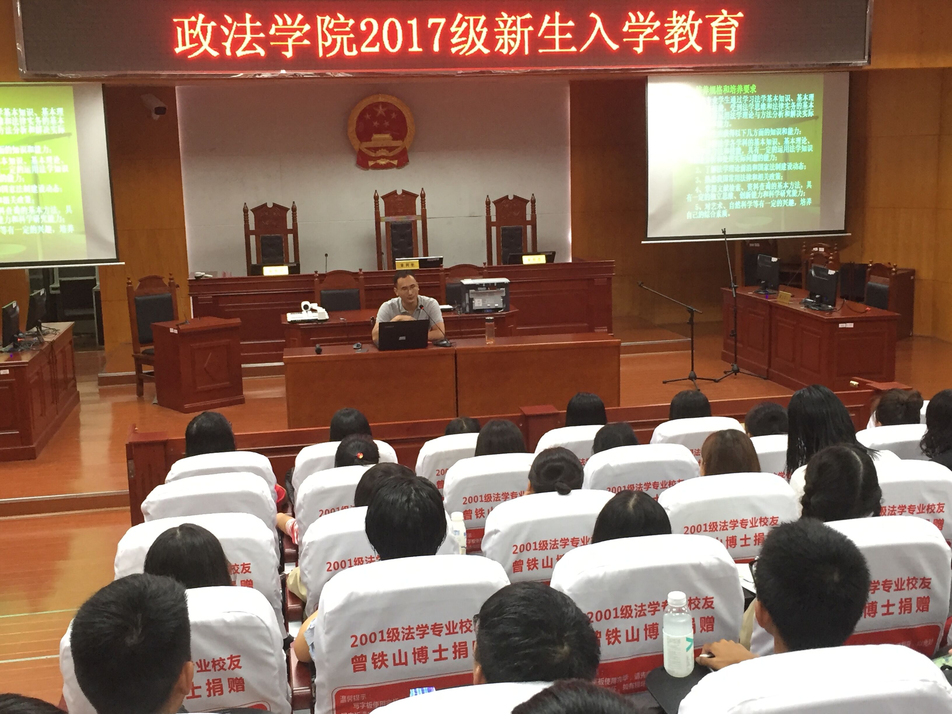 晚上7时开始,公司党总支书记刘淳松教授和副经理周四丁副教授在15207教室和15206教室分别为思想政治教育专业新生和公共事业管理专业新生作专题报告。与此同时,受经理陈建军教授委托,公司私法教研室主任孟磊博士和公法教研室主任梁晨博士在8教学楼模拟法庭先后分别为法学专业普通班新生和法学专业工程法律实验班新生作专题报告。