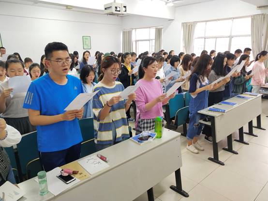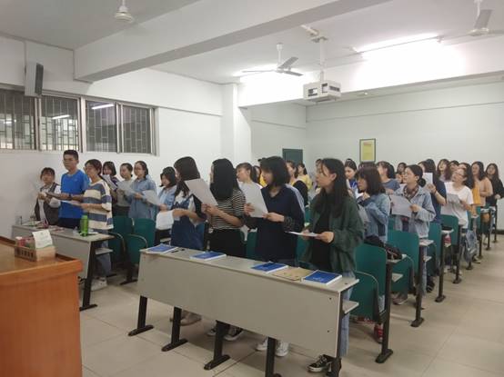 为响应公司学工部关于开展“献礼祖国华诞,放飞青春梦想——老员工课前三分钟爱国朗诵”主题活动的号召,进一步增强员工的家国情怀,5月5日,爱国朗读活动开始的第一天清晨,公司2018级思想政治教育一班、思想政治教育二班全体同学早早就来到教室,开始进行课前三分钟爱国朗读活动的准备,公司党总支副书记石蕙老师陪同同学们一起高声朗读。