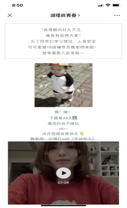在疫情防控的特殊时期,政MK体育学工线配合公司教学工作,结合员工思想实际,充分利用公司微信公众号、微博、官网等网络平台,积极策划开展了一系列主题鲜明、青春正能量的线上宣传和活动,为全院员工搭建了一个线上学习、生活、思想、文化等交流与展示的资源圈,确保了特殊时期公司员工管理和教育工作不断线。
