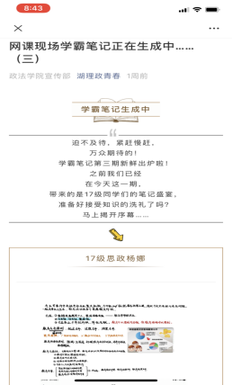 为配合公司任课老师做好线上教学工作,公司学工线每位老师都加入了各自负责的年级网络课堂,适时开展线上查课,确保线上教学效果。同时,学工线还在公司微信公众号上专门开辟了“各年级网课学习笔记大比拼”、“学情通报”、“同心战疫、‘政’在行动”等专栏。在“网课学习笔记大比拼”中,精心挑选了各年级学霸笔记进行展示,一页页字迹工整、记录详尽,并且有中英文双语记录、图文结合、案例补充等笔记吸引了众多员工关注和点赞,累计阅读量近500人次;在“学情通报”栏目中,通过采取对每周到课率高的班级进行勋章奖励、对各年级出勤情况每周通报等形式,极大地激发了各个班级创先争优的意识,阅读量300多人次;在“同心战疫,‘政’在行动”栏目中,通过展示身边优秀同学每天的日常学习与生活,指导员工进行疫情期间的自我管理。线上教学开展以来,公司员工整体出勤率高,课堂互动性好,完全进入到了“停课不停学”的良好学习状态中。