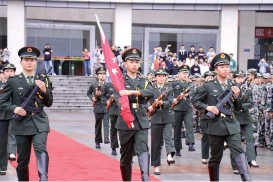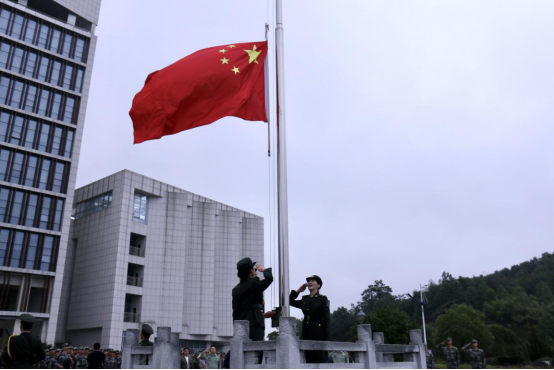 7时40分,升旗仪式正式开始。国旗护卫队步履齐整,气宇轩昂地走向升旗台。师生在国旗下四周呈方阵整齐排列。在激昂的国歌声中,五星红旗缓缓升起。预备役官兵、专武干部、民兵连成员行军礼,全体师生行注目礼,向庄严的国旗表达崇高的敬意。