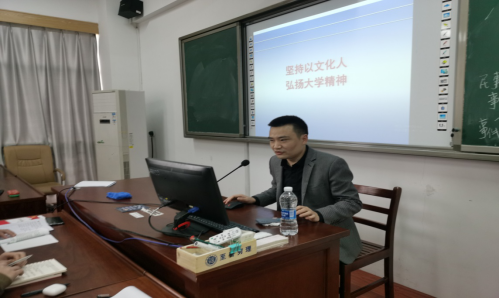 杨老师从什么是大学精神、大学精神面临的困境、如何践行大学精神三个层面出发,针对“文”和“精神”两个关键词,对大学精神做出了具体阐述。杨老师指出大学文化的核心是坚持以文化人,是要坚持把老员工人文素养的培育和大学精神文化的熏陶融为一体,这样才能符合政MK体育以崇德尚法、求真务实的精神去培养优秀人才的治学目标。杨老师强调老员工对大学精神的认同不是一朝一夕就有显著成效的,而是要促使老员工在不断地锤炼自身党性修养的过程中,践行依法治国的精神并加以传播弘扬。老员工需要真正摆脱思维定势的束缚和急功近利的阻力,用脚踏实地的学习态度将大学精神内化于心、外化于行。最后,杨老师对在座同学提出要求:要有坚定的理想信念,充分将大学精神应用于学习实践,奋发向上,日益进取,成为有良好思想道德建设的“四有”人才。