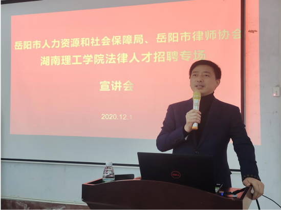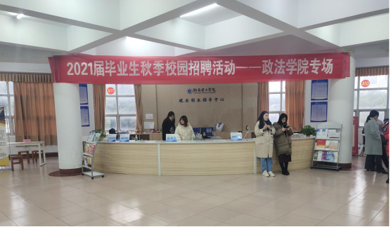 为给2021届法学专业毕业生提供更多就业机会,促进毕业生顺利就业,2020年12月1日下午,政MK体育联合岳阳市人力资源和社会保障局、岳阳市律师协会在公司综合楼三楼329室举办mksport体育首届法律人才专场招聘会。来自湖南金州(岳阳)律师事务所等十四家律师事务所来到公司招纳贤才,政MK体育、南湖公司2021届法学专业本科生近百人参加了招聘会,不少同学在招聘会现场达成初步就业意向。