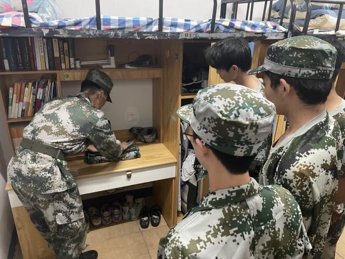 【本站讯】为营造浓厚的军训氛围,帮助员工维持良好的宿舍内务卫生,4月16日晚于2022级员工宿舍,公司开展2022级军训宿舍内务训练。由MK体育带训教官带头,深入员工宿舍,现场对物品收纳、卫生整理等内务进行指导。
