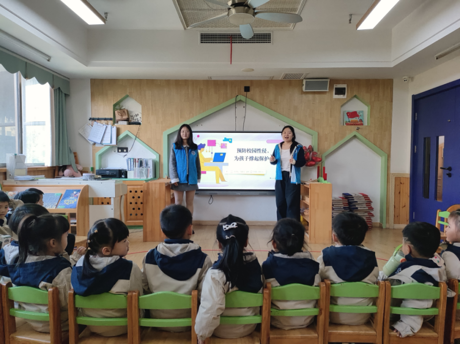 两位志愿者通过卡通动画、情景模拟等方式,向小朋友们讲解“隐私部位”的概念,强调“背心、裤衩覆盖的地方不能让他人随意触碰”。志愿者们还设计“身体红绿灯”小游戏,帮助小朋友们区分安全与不安全的身体接触,学会用“不、跑、骗、记”四字口诀应对危险情境。活动通过生动有趣的互动形式,向幼儿园小朋友们普及防性侵知识,旨在提升幼儿的自我保护意识,营造安全健康的成长环境。