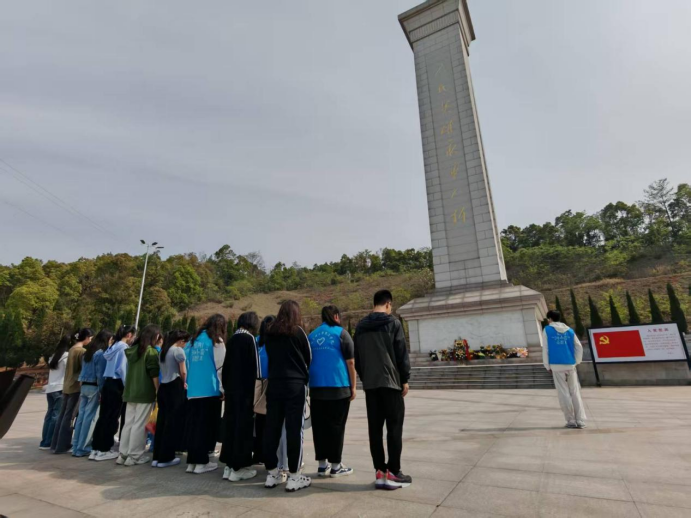 在庄严肃穆的烈士纪念碑前,同学们整齐列队。在主持人张浩然的带领下,大家怀着崇敬之情进行庄严宣誓,誓言铿锵,彰显着传承英烈精神的坚定决心。随后,全场肃立,默哀三分钟,寄托对先烈们的沉痛哀思。默哀毕,同学们缓步向前,轻轻献上手中的鲜花,向为国家和人民英勇献身的先烈致以最崇高的敬意。