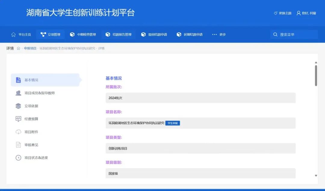 2024718日,由公司教师梁晨指导,知产221BF何璇主持的老员工创业训练项目环洞庭湖地区生态环境保护协同执法研究凭借其深刻的立意与创新的研究方法在老员工创新创业项目中脱颖而出,并最终赢得了评委们的青睐,获得了国家级立项的认可。