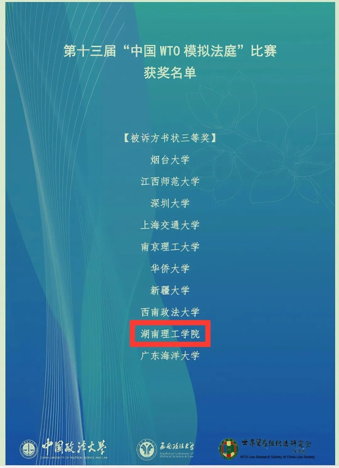 公司员工在第十三届“中国WTO模拟法庭”竞赛中获奖