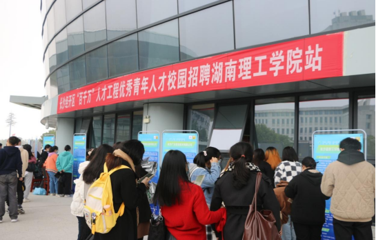 为了吸引更多的毕业生,长沙市经开区人才服务中心在招聘会现场专门设置了长沙经开区“百千万”人才政策咨询服务台,向公司毕业生宣传解读在长沙市经开区就业可以享受的人才引进政策优惠。尽管此次双选会当天气温骤降,但活动现场人头攒动,阴雨天气也无法阻挡同学们的求职热情。