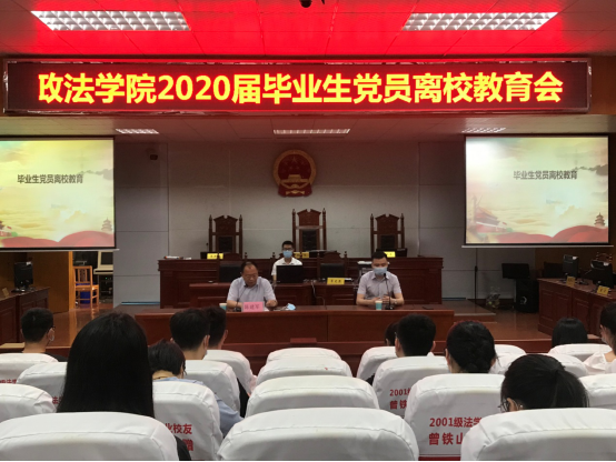 2020年5月27日下午四时,为做好政2020届毕业生文明离校的各项工作,引导员工党员在毕业生离校工作中发挥先锋模范作用,政MK体育在八栋二楼模拟法庭组织召开了2020届毕业生党员离校教育会。会议由辅导员杨宗圆主持,政公司党委书记陈建军教授莅临现场并给毕业生党员上离校前的最后一次党课。