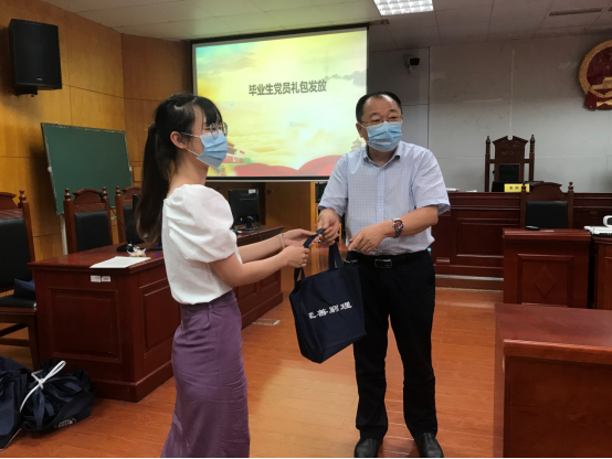 最后,陈建军书记向全体毕业生党员赠送了毕业礼包,沉甸甸的礼包承载着公司和公司对政法学子的期望和祝福。