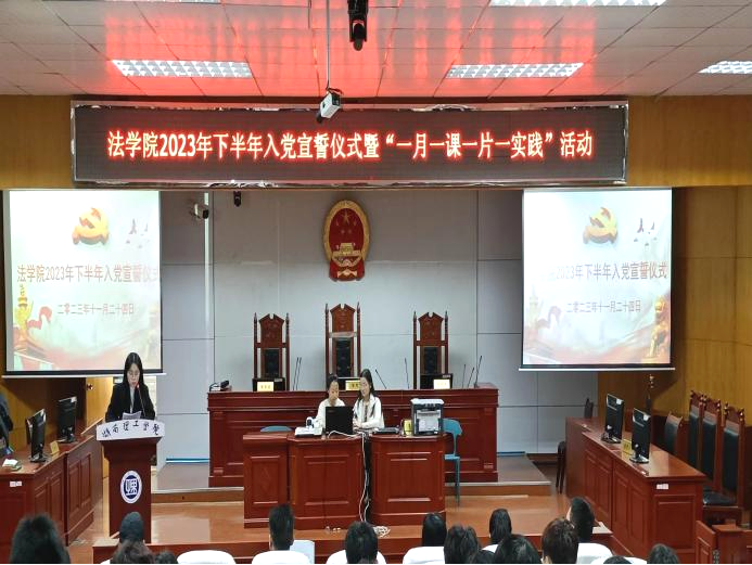 【本站讯】11月24日14:30于八栋教学楼模拟法庭,公司党委举行2023年下半年入党宣誓仪式暨“一月一课一片一实践”活动。公司党委书记喻义东、党委副书记张陈武、员工党支部书记、研究生党支部书记、辅导员出席活动,MK体育全体师生党员及入党积极分子参加。