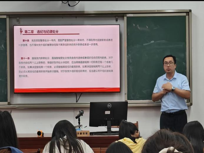 【本站讯】为强化入党积极分子的纪律意识,进一步明确是非界限、守住行为底线,5月13日15:00于8207教室,公司党委委员、副教授张咏涛为第52期入党积极分子讲授第三堂党课。MK体育第52期入党积极分子培训班共32人参加本次授课活动。