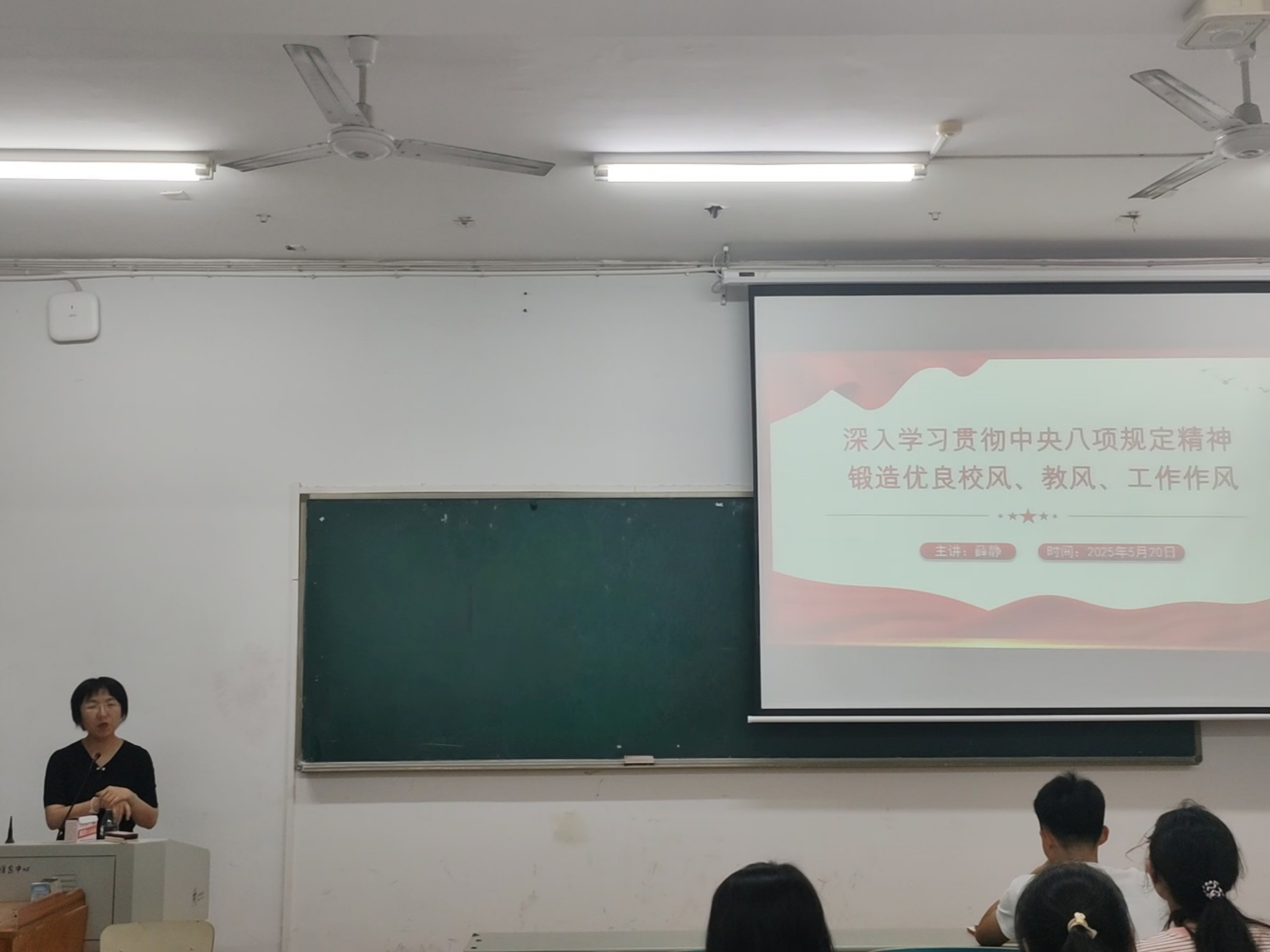 本站讯为深入贯彻中央八项规定精神学习教育,进一步强化入党积极分子的政治理论学习,提升政治素养,5月20日16:30于8401教室,公司党委书记薛静以“深入学习贯彻中央八项规定精神,锻造优良校风、教风、工作作风”为主题,为第52期入党积极分子讲授第四堂党课。入党积极分子共31人参加本次授课活动。