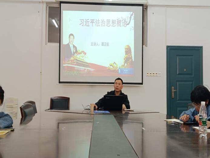 谭正航以“习近平法治思想概论”为主题,从“习近平法治思想形成发展的时代背景”“习近平法治思想的实践逻辑、理论逻辑和历史逻辑”“习近平法治思想的鲜明特色”展开详细阐述。他提到,法治兴则国兴,法治强则国强。习近平法治思想是习近平新时代中国特色社会主义思想的重要组成部分,是全面依法治国的根本遵循和行动指南。
