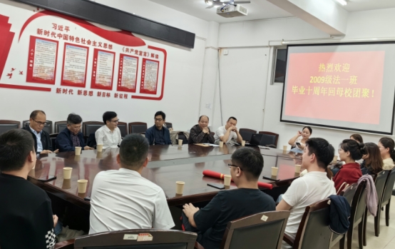 【本站讯】举国同庆,国庆长假期间,10月4日MK体育迎来了2013届法学一班员工毕业十周年回母校团聚。MK体育经理周四丁、党委副书记张陈武及该班班主任喻福东和部分教师代表热情接待回校员工,在MK体育会议室进行了座谈。